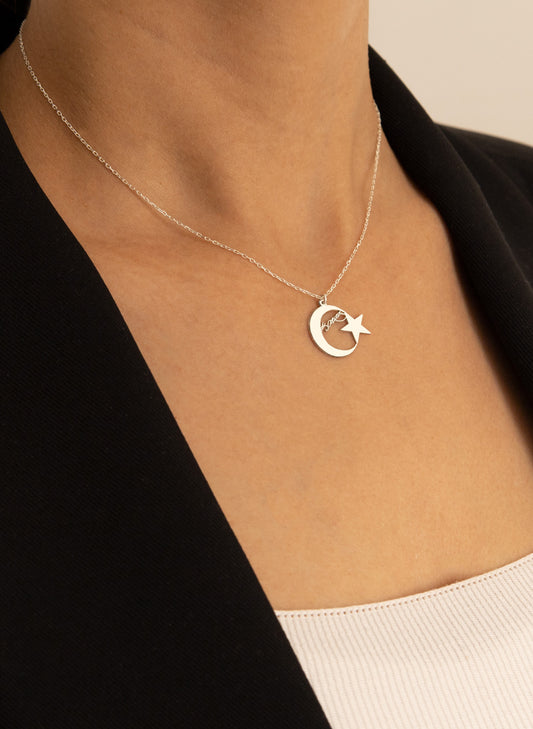 925 Ayar Gümüş Atatürk İmzalı Ayyıldız Kolye