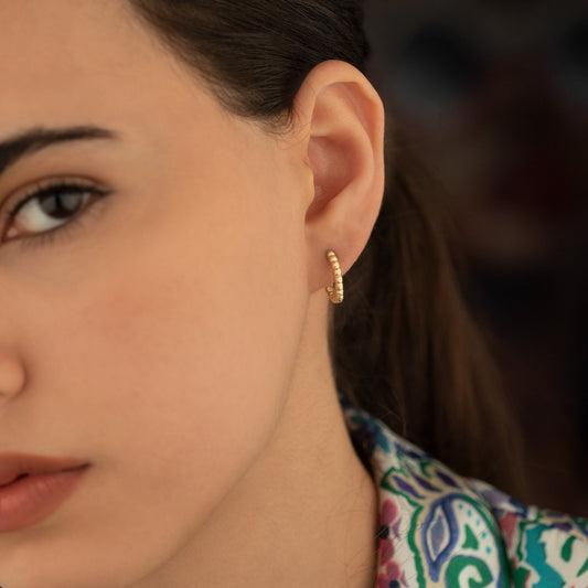 925 Ayar Gümüş Boncuklu Halka Huggie Küpe