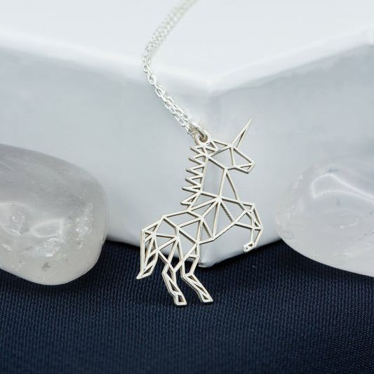 925 Sterling Silver Origami Unicorn Necklace