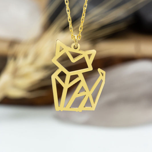 925 Sterling Silver Origami Cat Necklace