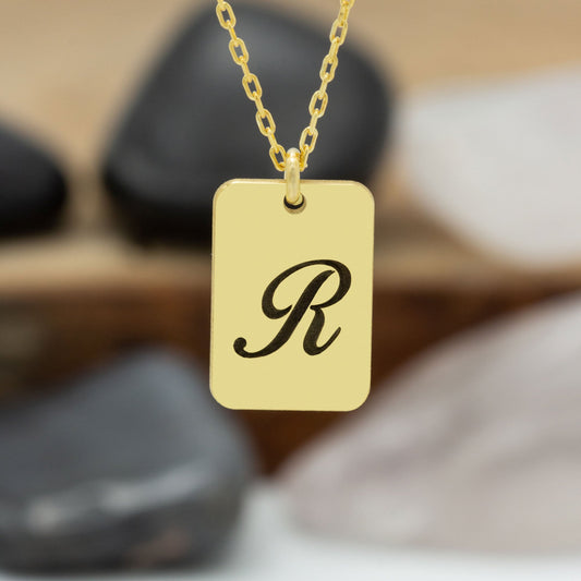 925 Sterling Silver Personalised Initial Tag Necklace Gold