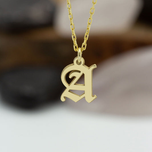 925 Sterling Silver Old English Initial Necklace