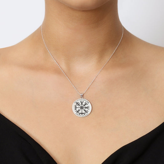 925 Sterling Silver Nordic Name Vegvisir Rune Necklace - Vikings Amulet