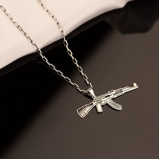 925 Sterling Silver Oxidized Chain Kalashnikov Necklace