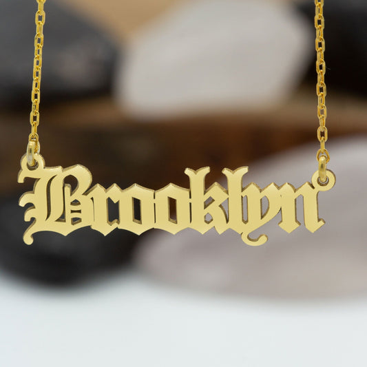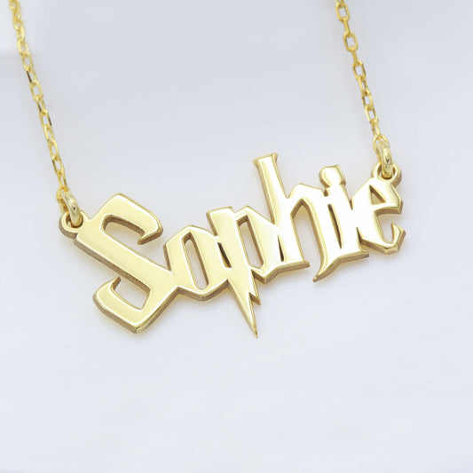 925 Sterling Silver Personalized Old English Font Name Necklace