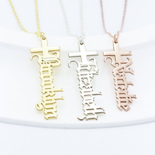 925 Sterling Silver Personalized Old English Name Cross Necklace