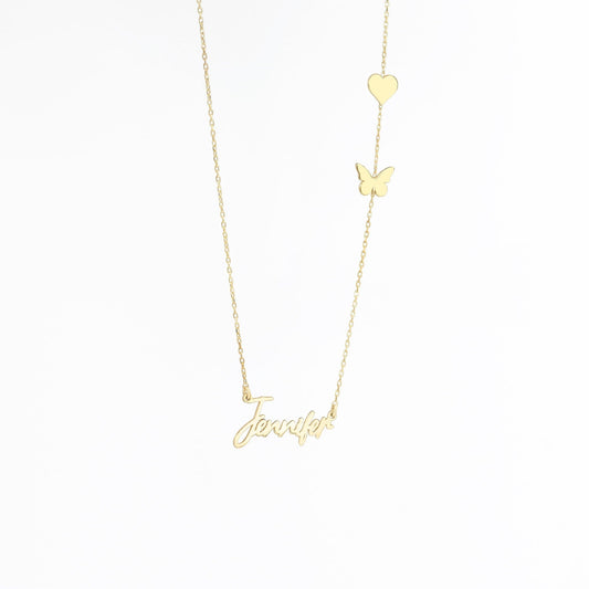 925 Sterling Silver Personalized Name Necklace with Heart and Butterfly