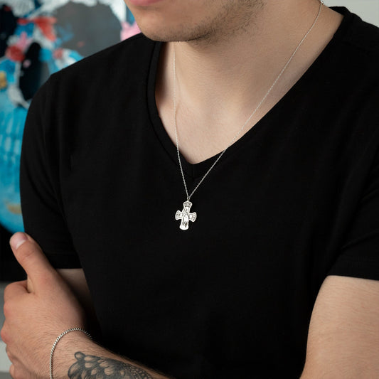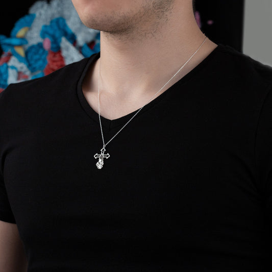 925 Sterling Silver Praying Hands Crucifix Necklace