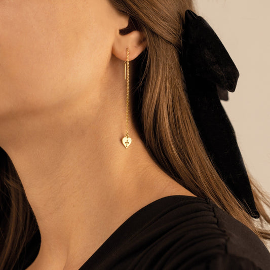 925 Ayar Gümüş İplikçi Kalpli Haç Küpe