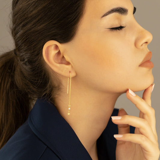 925 Ayar Gümüş Threader Yıldız Halka Küpe