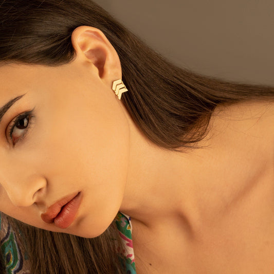 925 Ayar Gümüş Üç Sıralı Chevron Ok Küpe