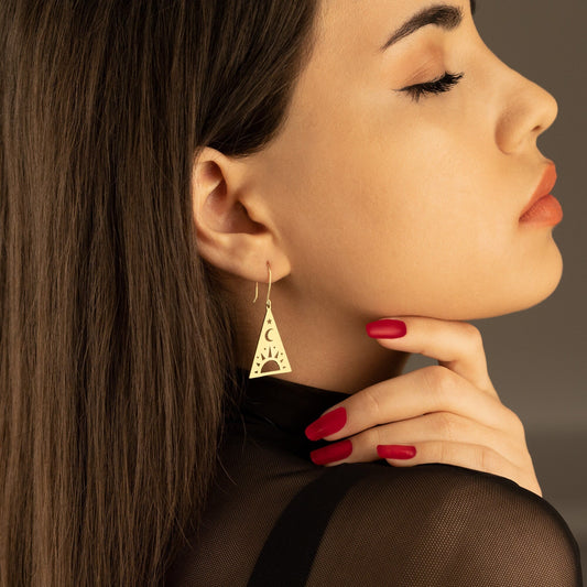 925 Ayar Gümüş Üçgen Kulak Ceketi İsimli Küpe