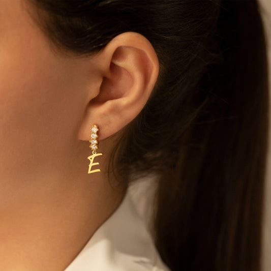 925 Ayar Gümüş Pave Baş Harfli Küpe