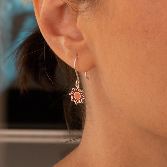 925 Ayar Gümüş Kırmızı Güneş Küpe