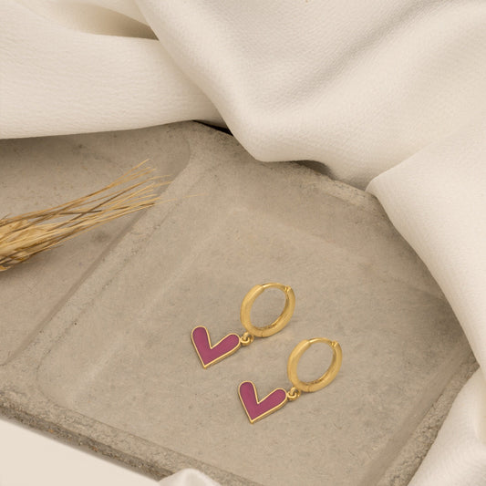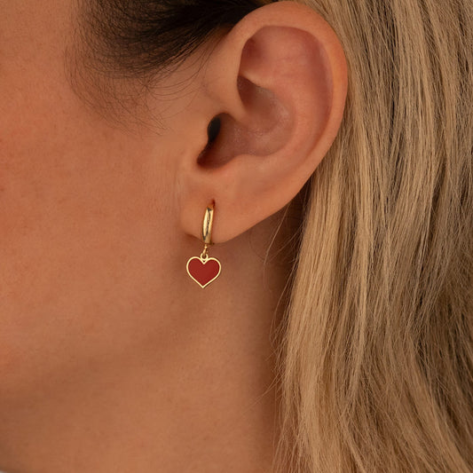 925 Ayar Gümüş Kırmızı Kalp Halka Küpe