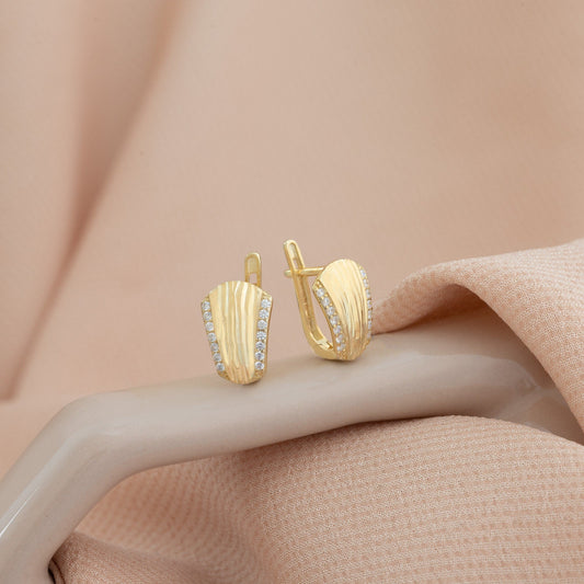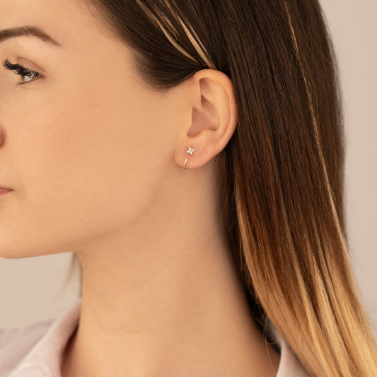 925 Ayar Gümüş Pave Üç Yapraklı C Halka Küpe