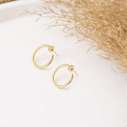 925 Ayar Gümüş Pave Silindir Daire Çivili Küpe