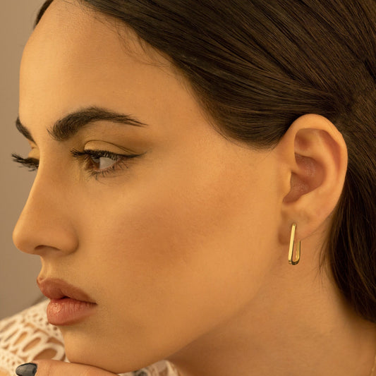 925 Ayar Gümüş Dikdörtgen Halka Küpe Huggie