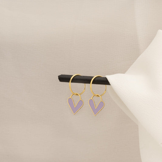 925 Ayar Gümüş Lila Renkli Kalp Küpe