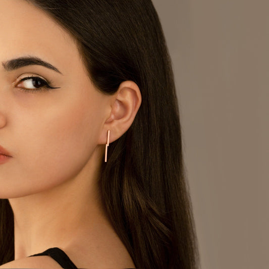 925 Ayar Gümüş Çift Çubuk Kulak Ceketi Küpe