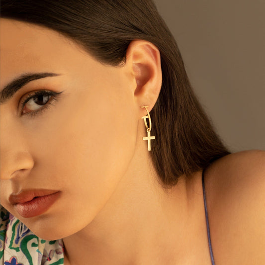 925 Ayar Gümüş Zarif Haç Saplama Küpe