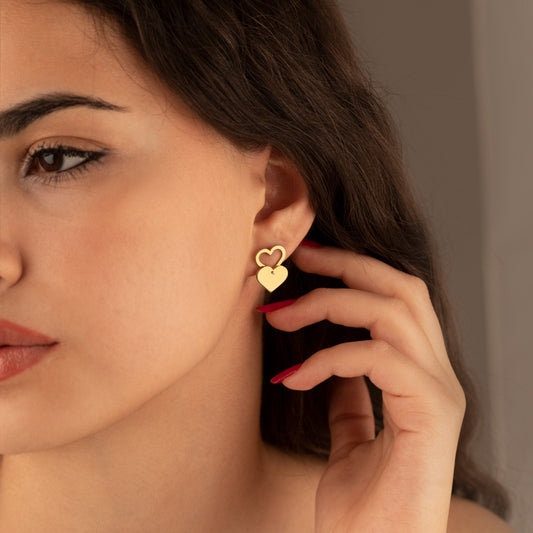 925 Ayar Gümüş Çift Kalp Damla Küpe
