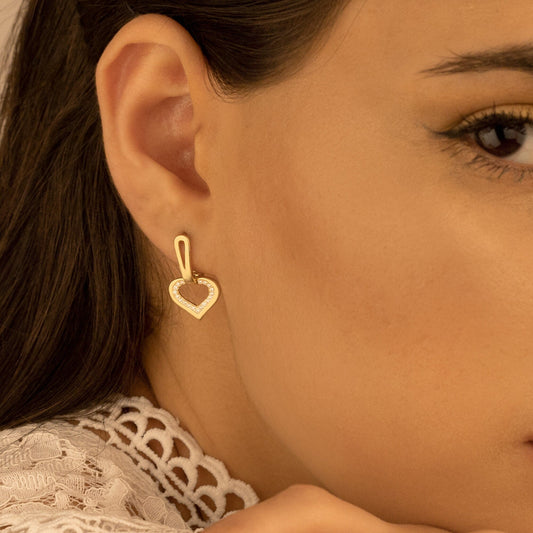 925 Ayar Gümüş Pırlanta Kalp Sallantılı Halka Küpe