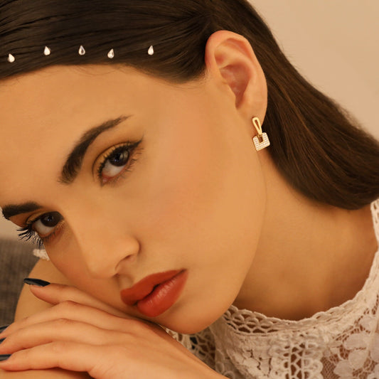 925 Ayar Gümüş Zarif Geometrik Dikdörtgen Küpe