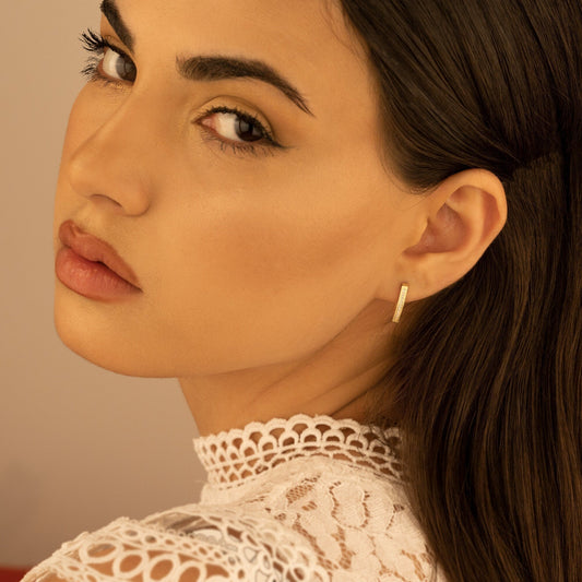 925 Ayar Gümüş Pırlanta Pave Huggie Küpe