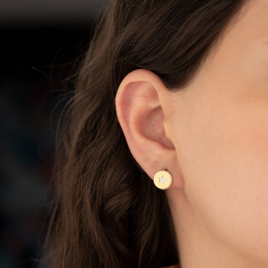 925 Ayar Gümüş Pırlanta Yuvarlak Yıldız Halka Küpe