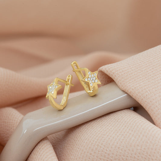 925 Ayar Gümüş Pırlanta Yıldız Halka Küpe