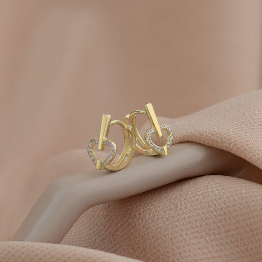 925 Ayar Gümüş Sallantılı Pırlanta Kalp Halka Küpe