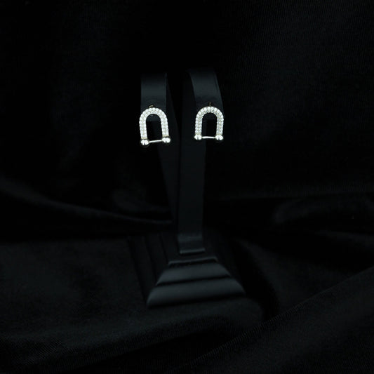 925 Ayar Gümüş Pırlanta At Nalı Saplama Küpe