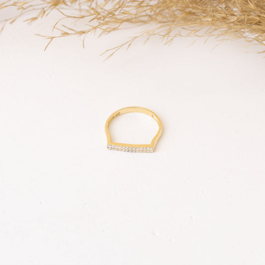 925 Ayar Gümüş Düz Üst Pırlanta Pave İnce Çubuk Yüzük
