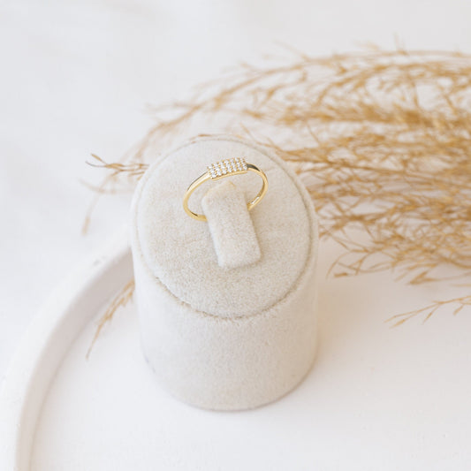 925 Ayar Gümüş Pırlanta Pave Dikdörtgen Çubuk Yüzük