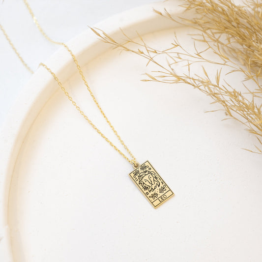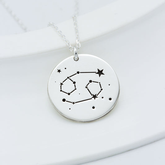 925 Sterling Silver Personalized Zodiac Star Sign Card Necklace