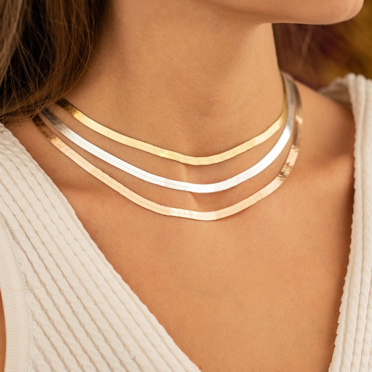925 Sterling Silver Snake Layered Herringbone Chain Necklace