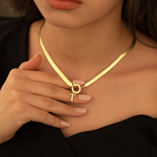 925 Sterling Silver Snake Layered Chain With Initial or Name