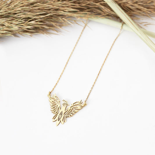 925 Sterling Silver Unique Phoenix and Initial Gold Necklace
