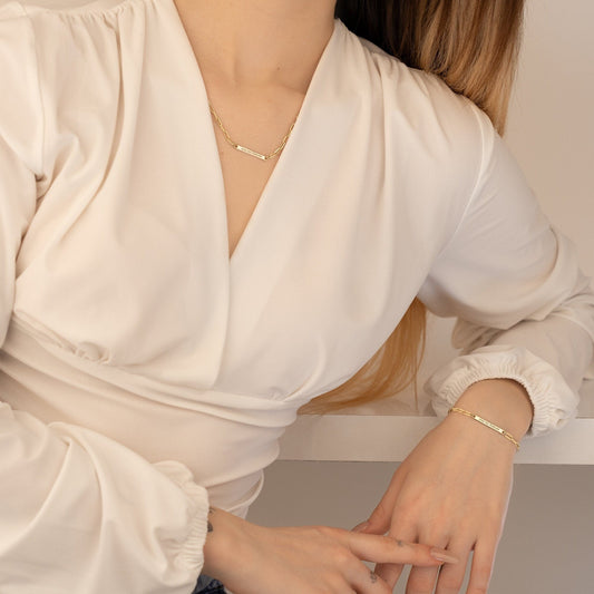 Choker Tag Necklace | Custom Mini Name Bar Necklace | Gift for Her | Dainty Paperclip Chain Charm Dog Tag Necklace | Mother's Day Gift