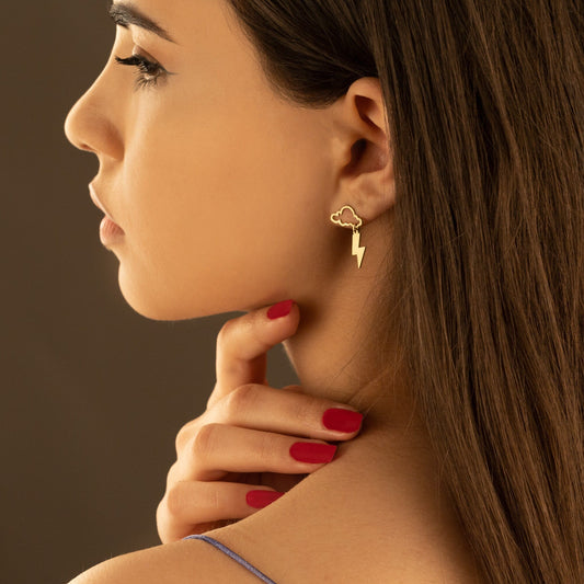 925 Sterling Silver Cloud and Lightning Dangle Earrings