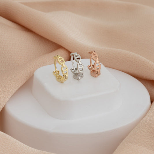 925 Sterling Silver Chain Hoop Huggie Earrings