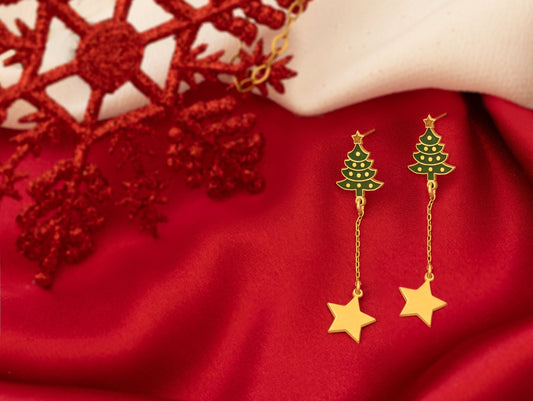 925 Sterling Silver Christmas Tree Dangle and Drop Earrings