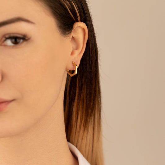 925 Sterling Silver Chunky Hexagon Hoop Earrings