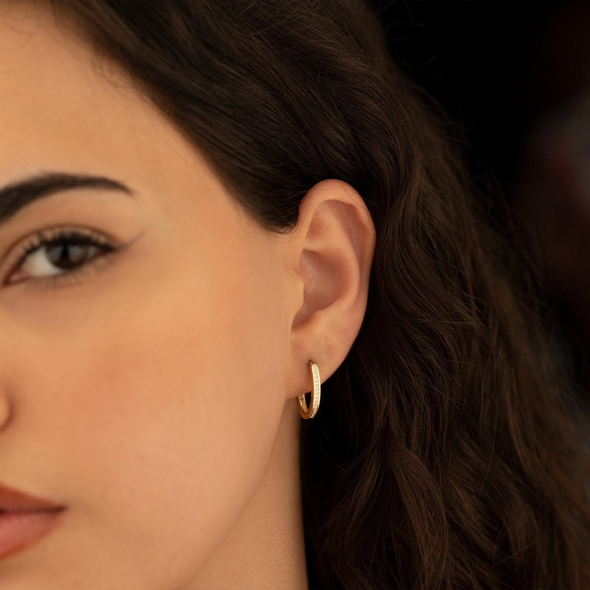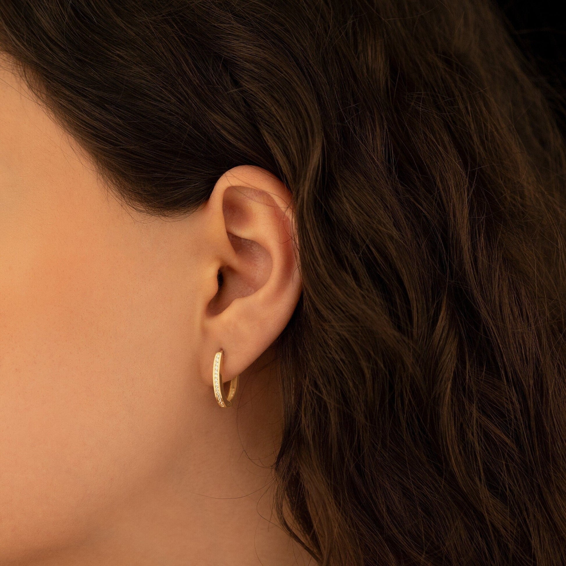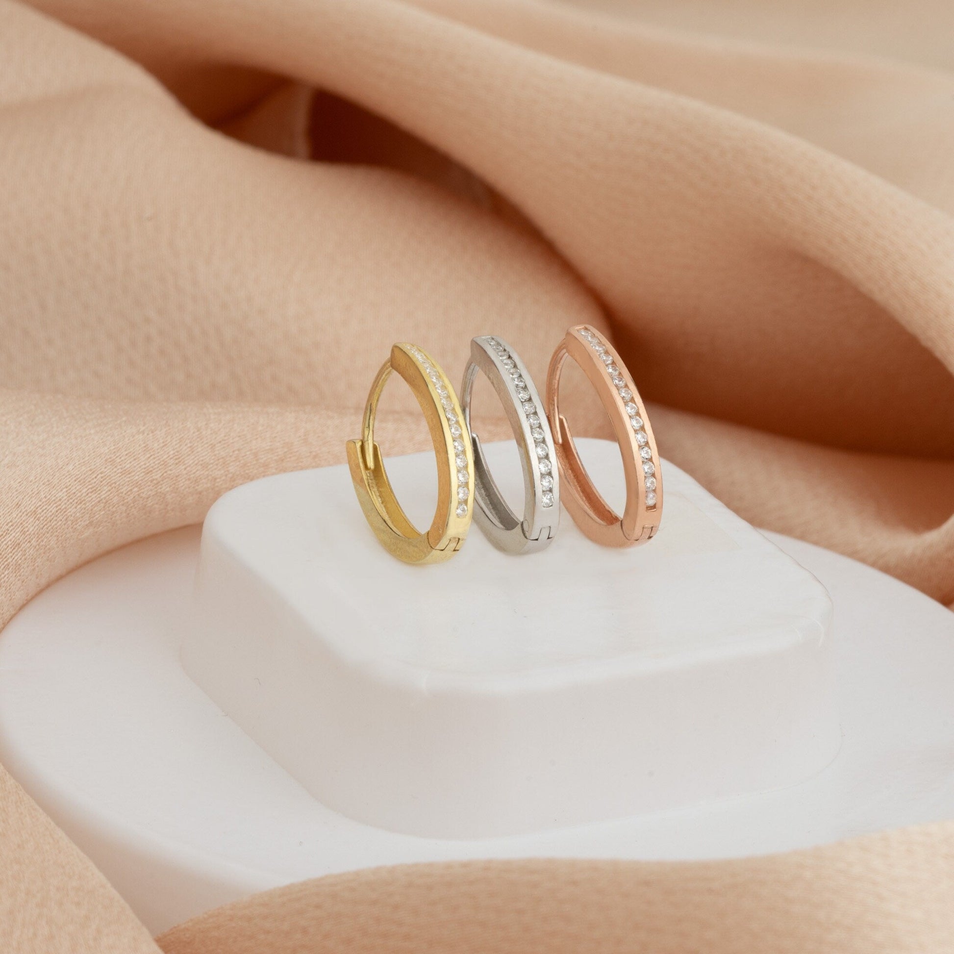 Diamond Line Rectangle Earrings - Pave Hoop Earrings - Cable Link Earrings - Dainty Earrings - Earrings for Women - Gift for Her