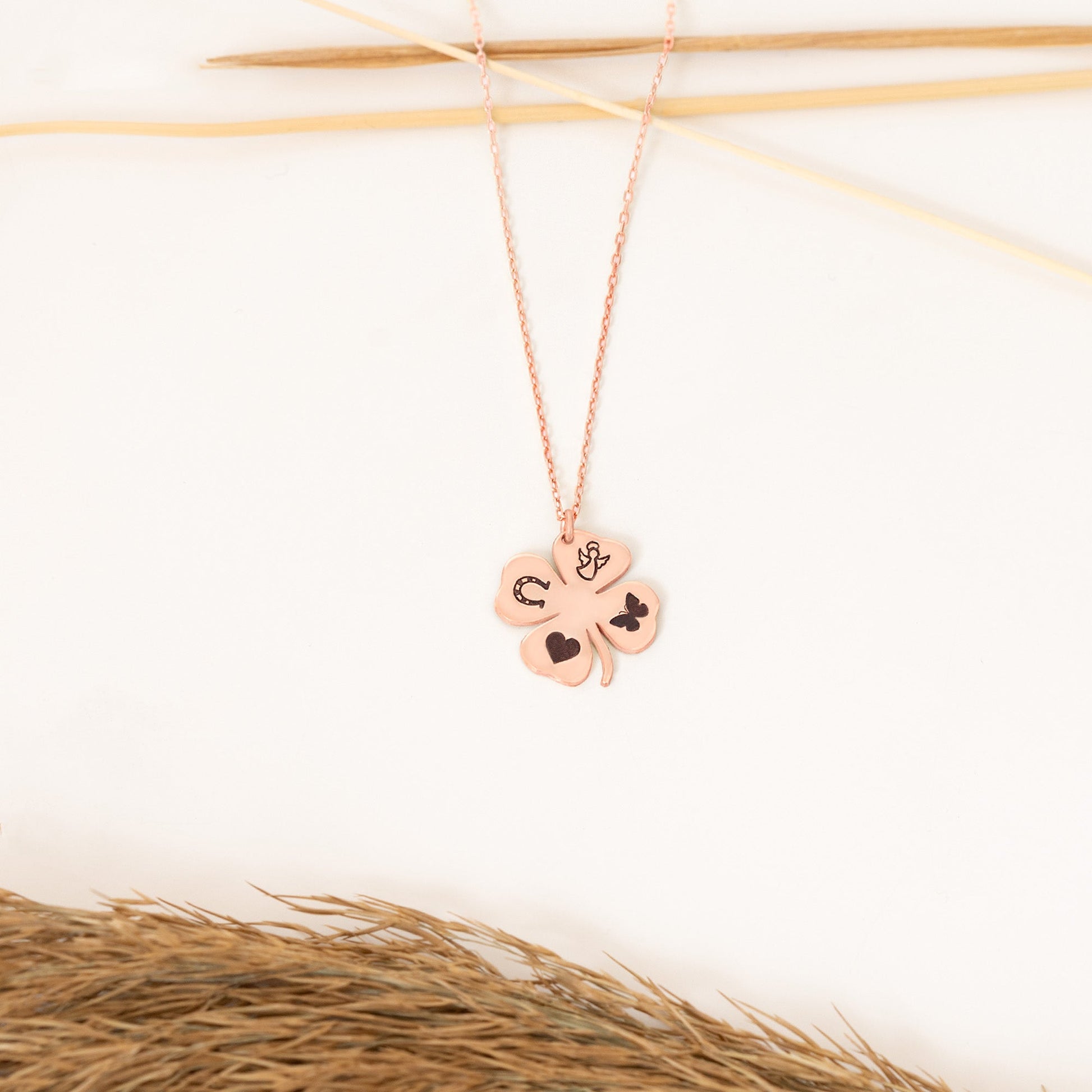 Four Leaf Clover Necklace - Personalized 4 Leaf Clover Necklace Silver - Gold Shamrock Necklace - Four Leaf Clover Jewelry